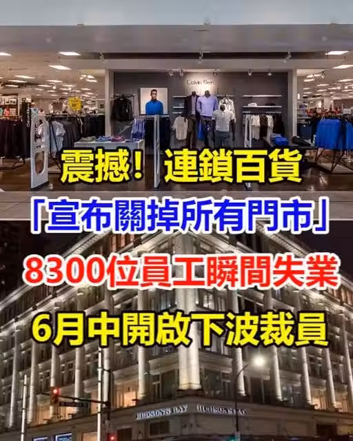 震撼!連鎖百貨「宣布關掉所有門市」8300位員工瞬間失業「6月中開啟下波裁員」