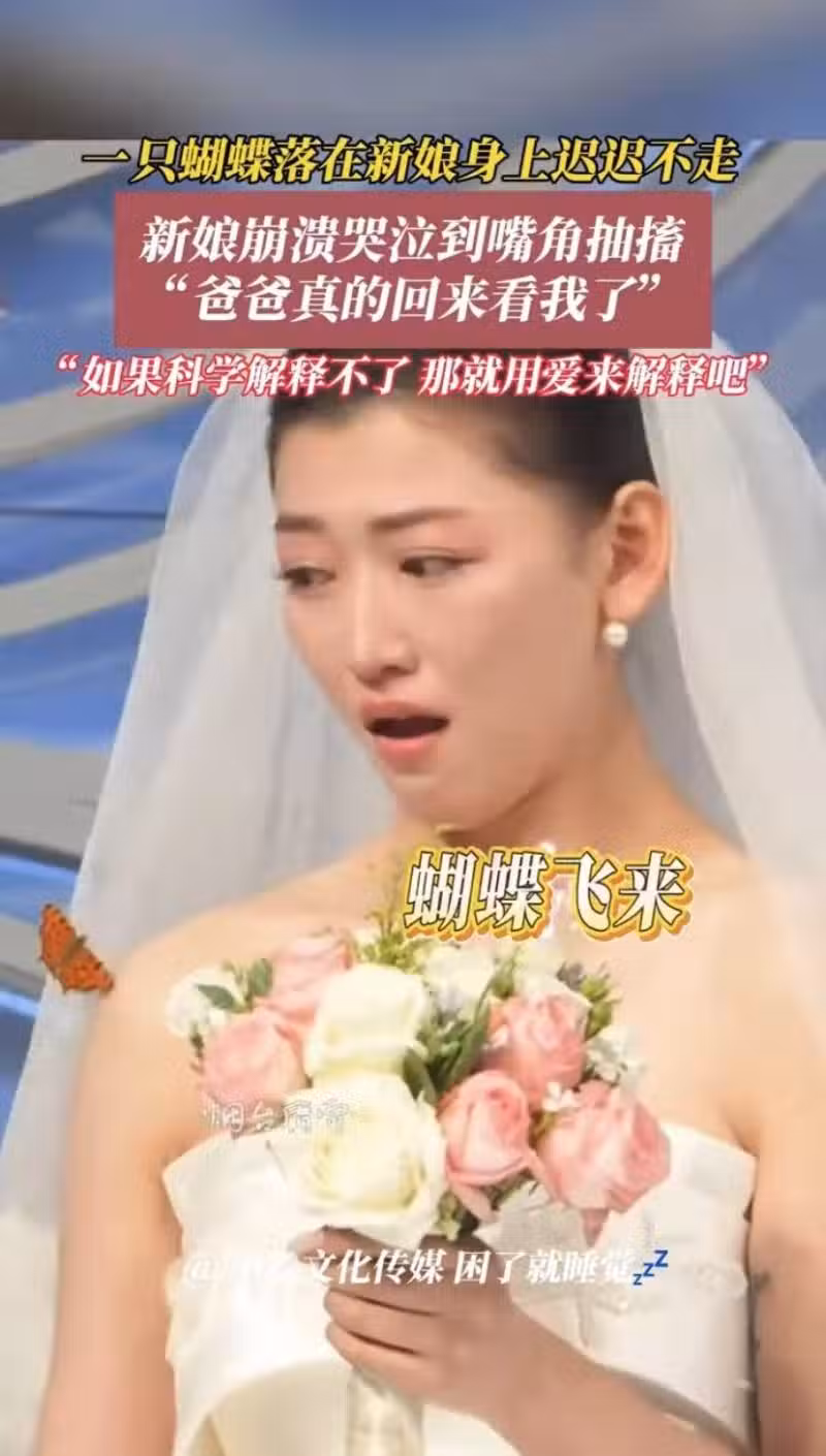 婚禮上,「一隻胡蝶死守新娘」遲遲不走「新娘愣3秒」當場淚崩顫喊:今天他的真來了!