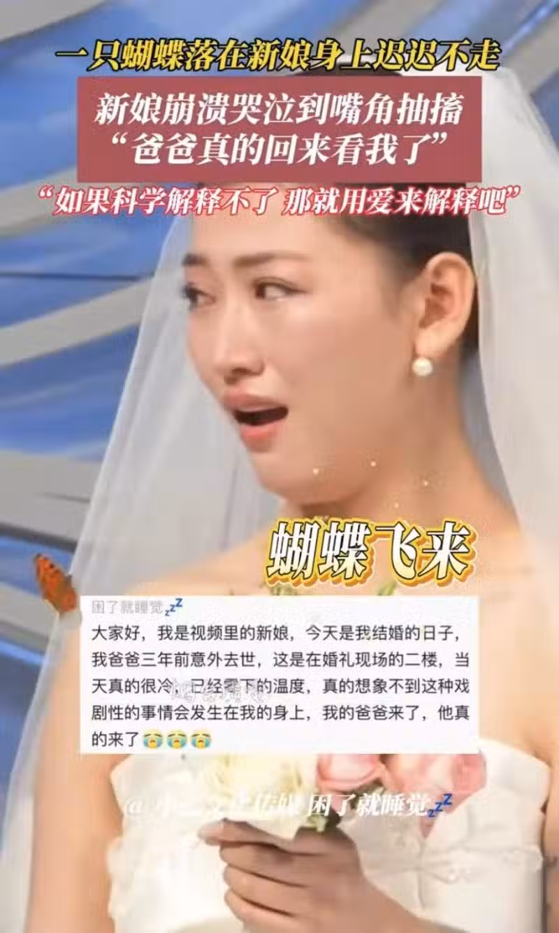 婚禮上,「一隻胡蝶死守新娘」遲遲不走「新娘愣3秒」當場淚崩顫喊:今天他的真來了!