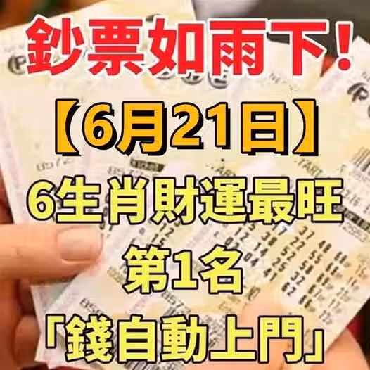 鈔票如雨下!【6月21日】6生肖財運最旺,第1名「錢自動上門」!