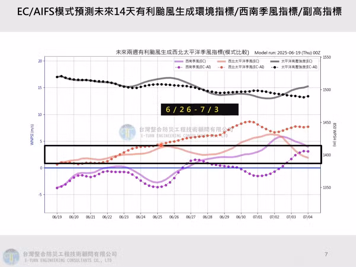 另外,氣象專家吳德榮也在專欄表示,歐洲系集模式持續調整,最新模擬顯示,未來10天內西北太平洋在關島北方海面的熱帶擾動「發展機率高」,生成輕台機率高達50%,其路徑為向日本南方海面前進、再向東北大迴轉遠離。