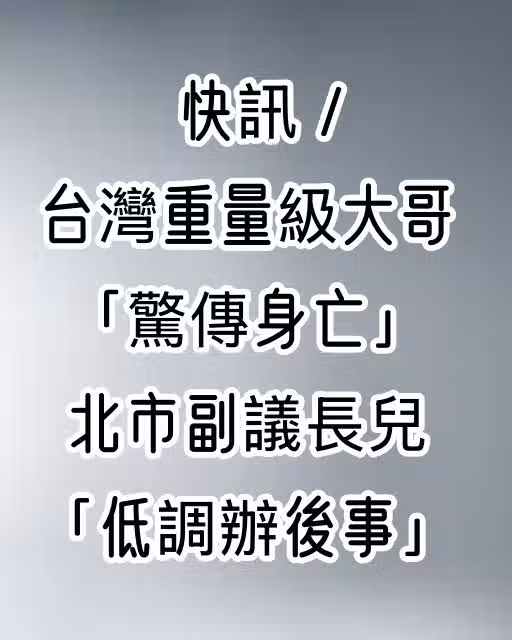 快訊/台灣重量級大哥「驚傳身亡」!北市副議長兒「低調辦後事」~