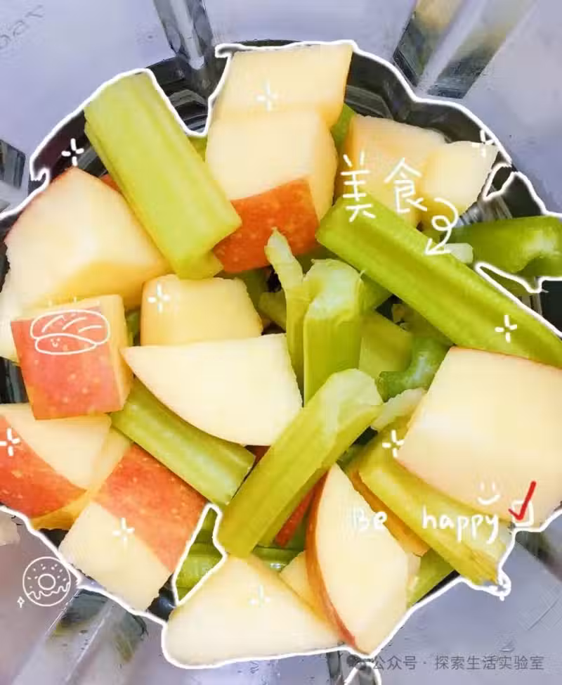 1️⃣芹菜洗凈切段,蘋果去皮切塊(去核),一起放入榨汁機。
