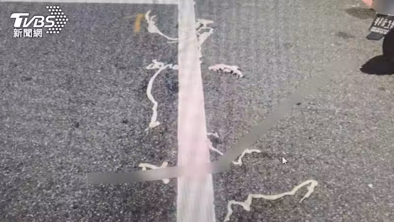 女騎士直行接近路口時,突然人車倒地,而肇事「元兇」竟是一條白色條狀物體—豬大腸。目擊者表示,當時女騎士摔倒後,有一名男子站在旁邊幫忙打電話叫救護車,而女騎士就是輾過豬大腸後滑倒的,經查看監視器畫面發現,