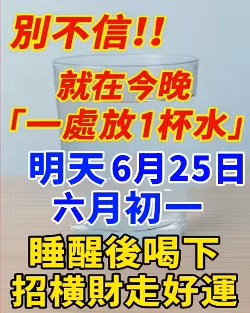 🔥別不信!靈驗到驚人!就在今晚睡前,放一杯水在這裡,明天「農曆六月初一」一早喝下去,好運直接開啟,財氣衝破天花板💰✨