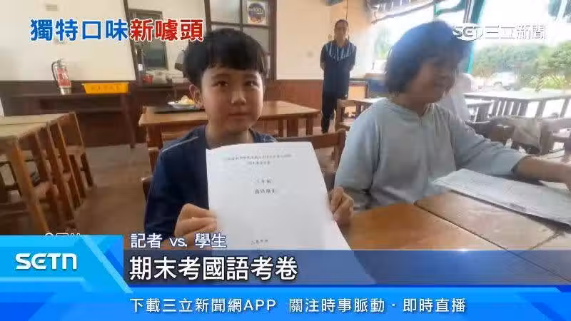 記者vs.學生:「期末考國語考卷。(你考幾分?)100。」