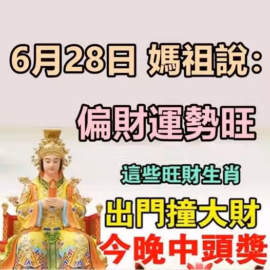 偏財運勢旺,6月28日出門撞大財,今晚中頭獎的生肖!