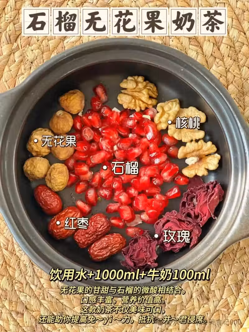 - 操作流程: 使用通用流程(步驟1-4)。無花果和石榴的搭配提供豐富營養。