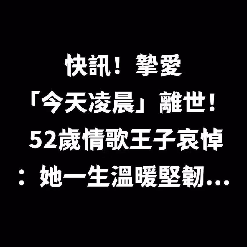 快訊/摯愛「今天凌晨」離世! 52歲情歌王子哀悼:她一生溫暖堅韌...