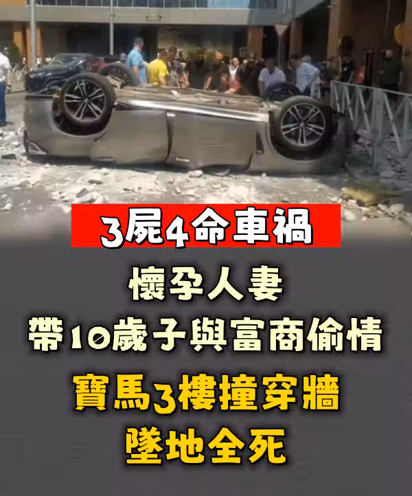 3屍4命車禍│懷孕人妻帶10歲子與富商偷 情 寶馬3樓撞穿牆墜地全死