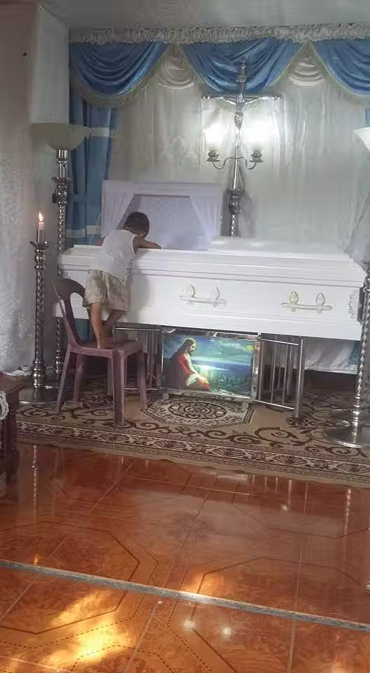 小男孩不知道媽媽已經去世,還趴在棺木上痴痴望著她,當阿姨聽到他問出「這一個問題」心臟都快裂開了