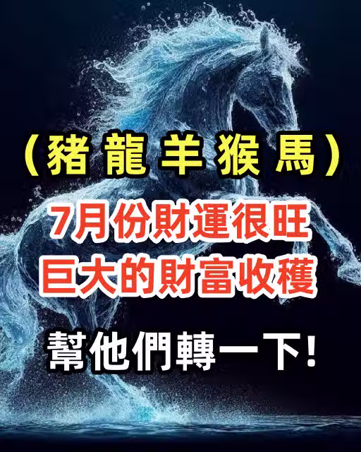 (豬 龍 羊 猴 馬)7月份財運很旺,巨大的財富 收穫,幫他們轉一下!