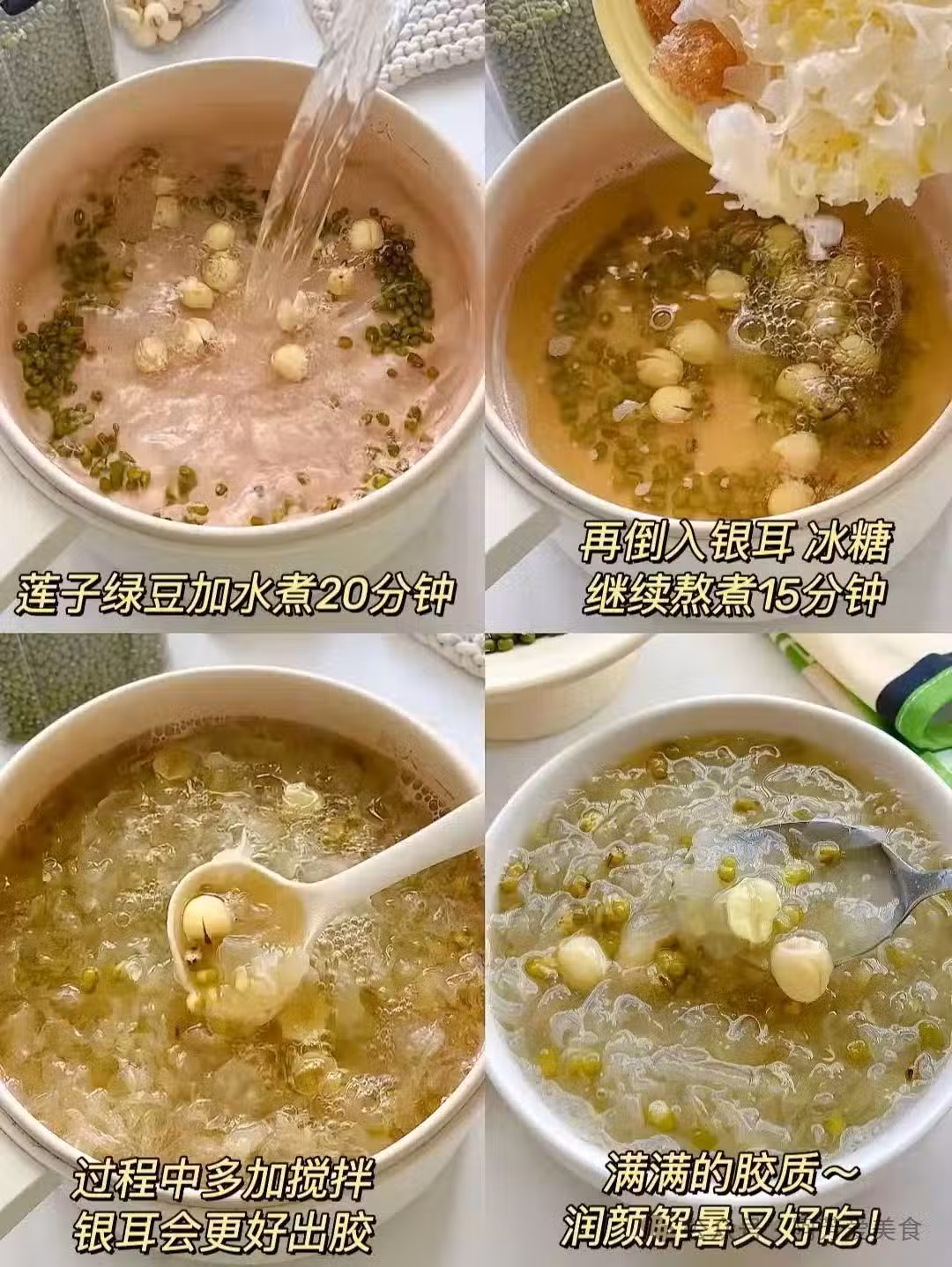 等湯放涼時,我舀了半勺嘗味道。綠豆沙沙地化在舌尖,銀耳滑溜溜的帶著點脆勁兒,冰糖的甜味很輕,剛好壓住豆腥氣。