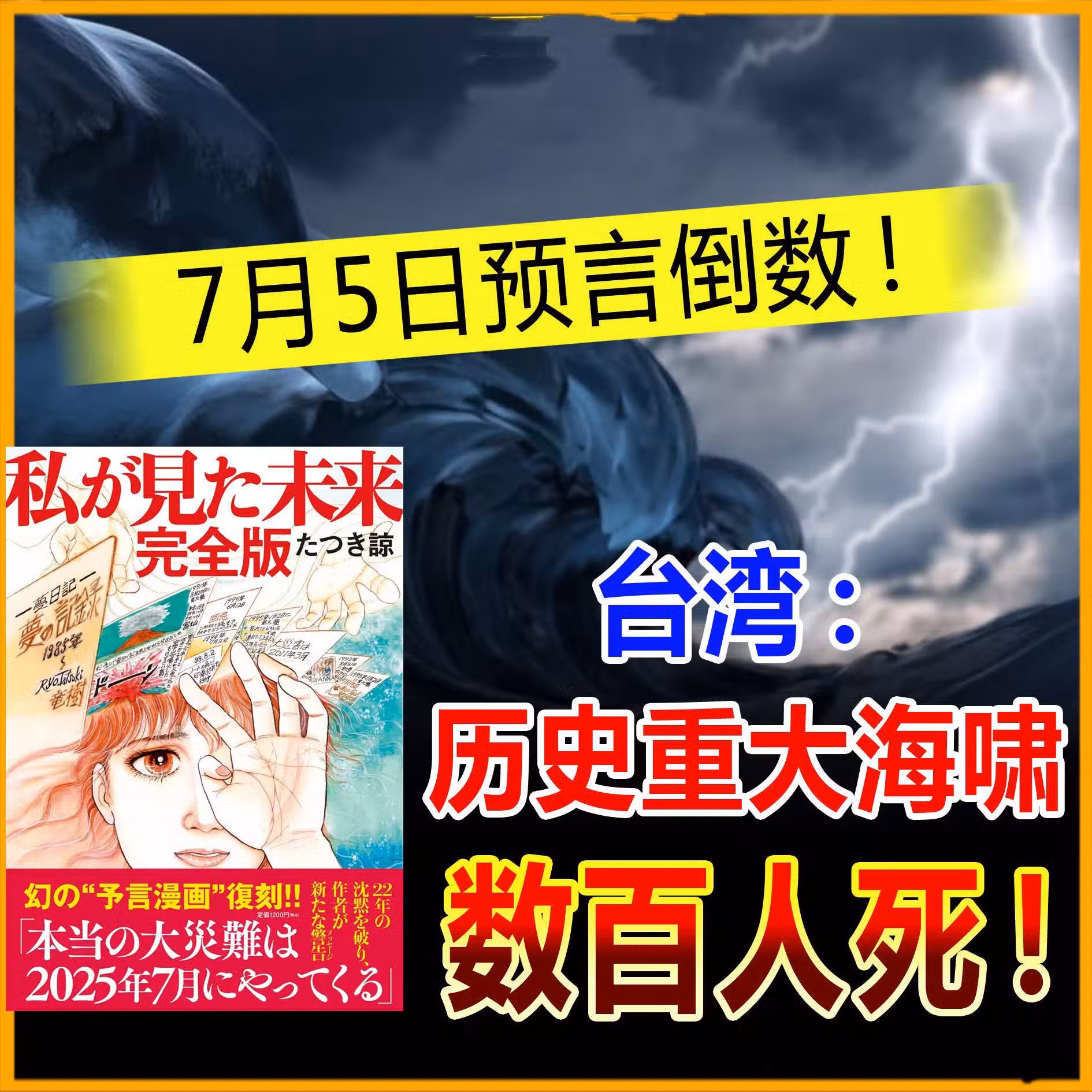 (台北4日綜合電)日本漫畫家竜樹諒作品《我所看見的未來》,書中提到「7月5日末日預言」進入倒數,引發不小恐慌。