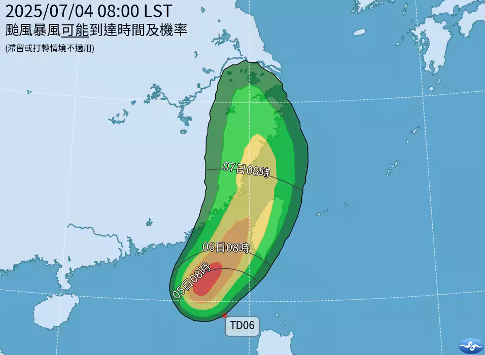 氣象粉專「台灣颱風論壇|天氣特急」則分析表示,經過一夜整合,TD06環流結構已大幅改善,預計明 (5) 日隨著北方高壓減弱、另一高壓從低緯度西伸,准丹娜絲將大角度轉向東北加速移動。預計有2條潛在路徑,一是周日 (6) 下半天至下周一 (7) 白天通過台灣海峽或穿越西部陸地北上;另一種則是穿越台灣南端,沿著東部近海北上,但機率較低。