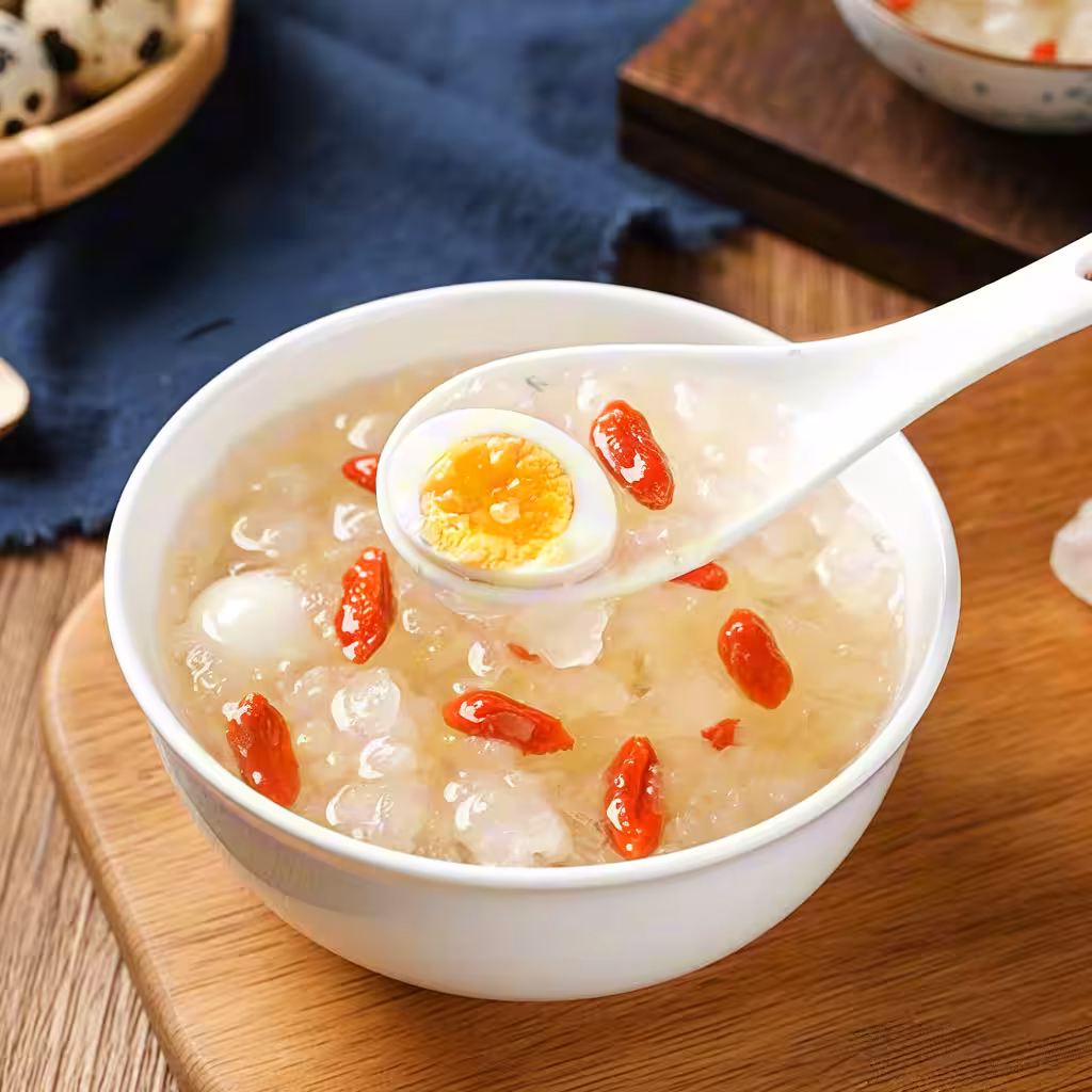 【功效】:鵪鶉蛋被稱為「動物人參」,含黃體酮成分;銀耳滋陰潤燥,兩者搭配潤膚抗衰,適合熬夜後或秋冬乾燥季。