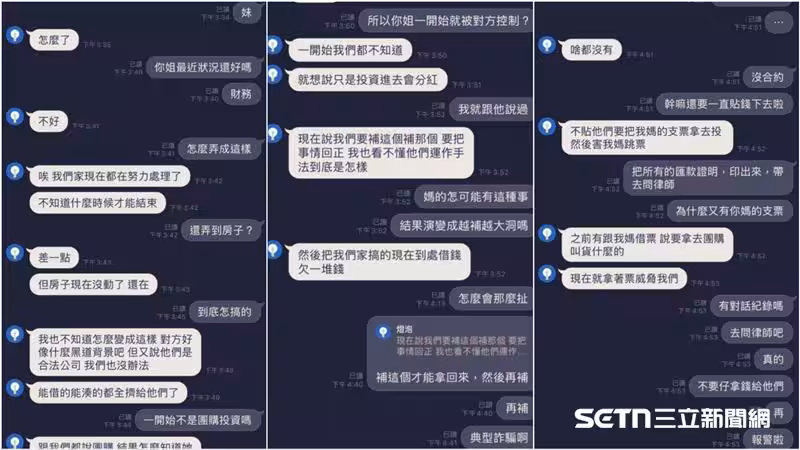 胡先生立刻聯絡王家二妹詢問狀況,一問發現王家被投資詐騙養套殺,對方以刷卡買黃金給佣金手法,誘騙王家大姐入局,再透過大姐把王母及二妹拐進來,最後一家人慘遭殺肉。王家二妹曾想報警求救,但被姐姐阻止,說報警會讓事情更複雜,最終一家人只能到處借錢。