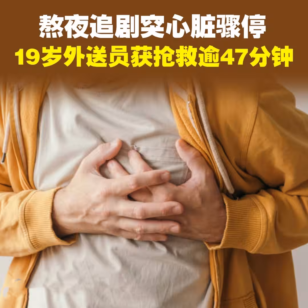 (杭州訊)中國浙江一名19歲男子從事外送工作,連續2天熬夜追劇,與女友聊天時突然心臟驟停,一度瀕臨死亡。所幸女友機警施救,加上救護人員與醫院團隊接力搶救超過47分鐘,最終挽回一命。