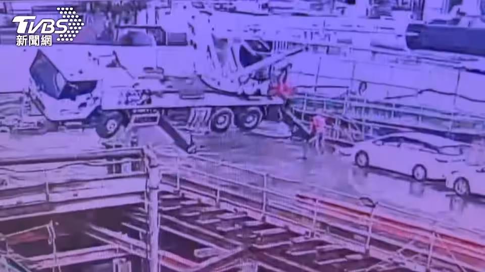獨/起重機翻覆工人跳車逃生!伸臂砸地面 驚險瞬間全錄下