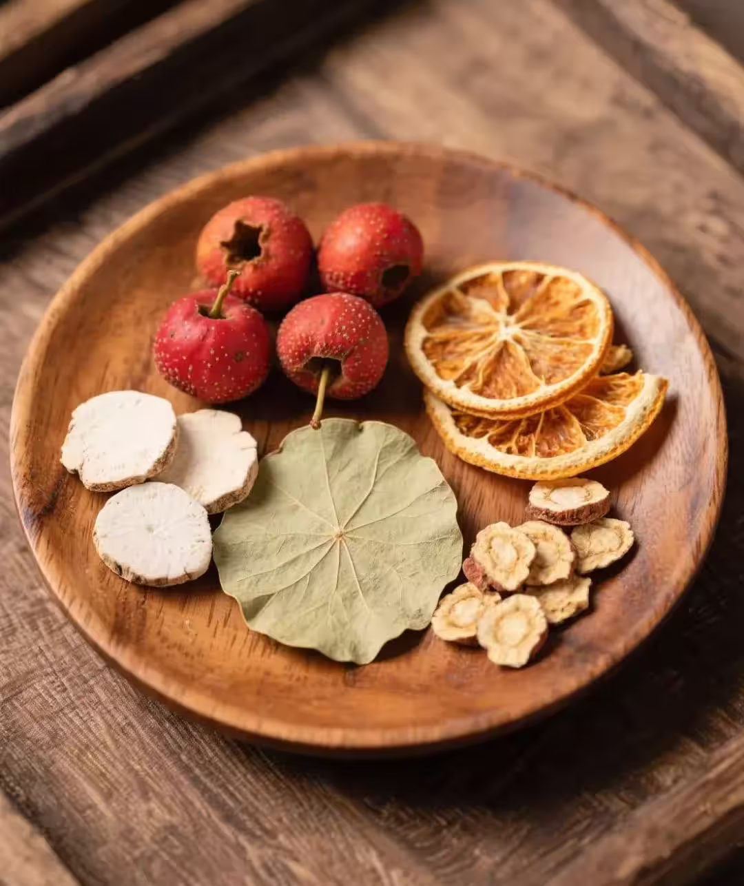 配方:山楂6g + 荷葉5g + 茯苓5g + 陳皮3g