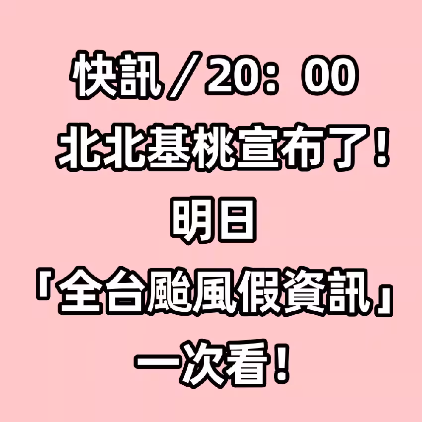 快訊/20:00 北北基桃宣布了! 明日 「全台颱風假資訊」 一次看!