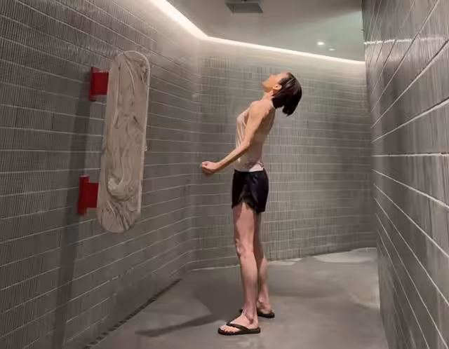 香港知名女星曬洗澡視頻,濕身透視黃色內衣,四肢纖細瘦成皮包骨