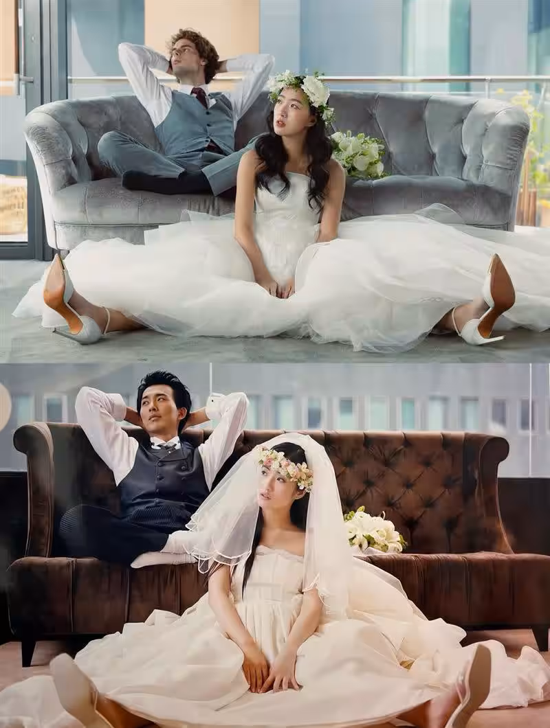7日蔡牧霏曝光婚紗照,雖父母蔡岳勛與于小惠證實已於2020年離婚,但蔡牧霏還是挖出20年前父母的婚紗照復刻,與准老公Tyler做出一樣的動作拍婚紗照。