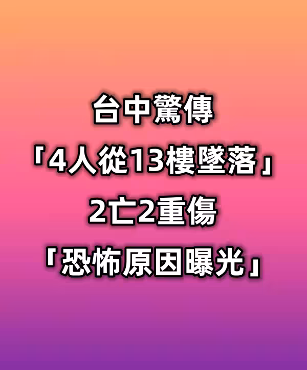 台中驚傳「4人從13樓墜落」!!2亡2重傷「恐怖原因曝光」