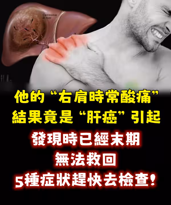他的「右肩時常酸痛」結果竟是「肝癌」引起,發現時已經末期無法救回!5種症狀趕快去檢查!!!