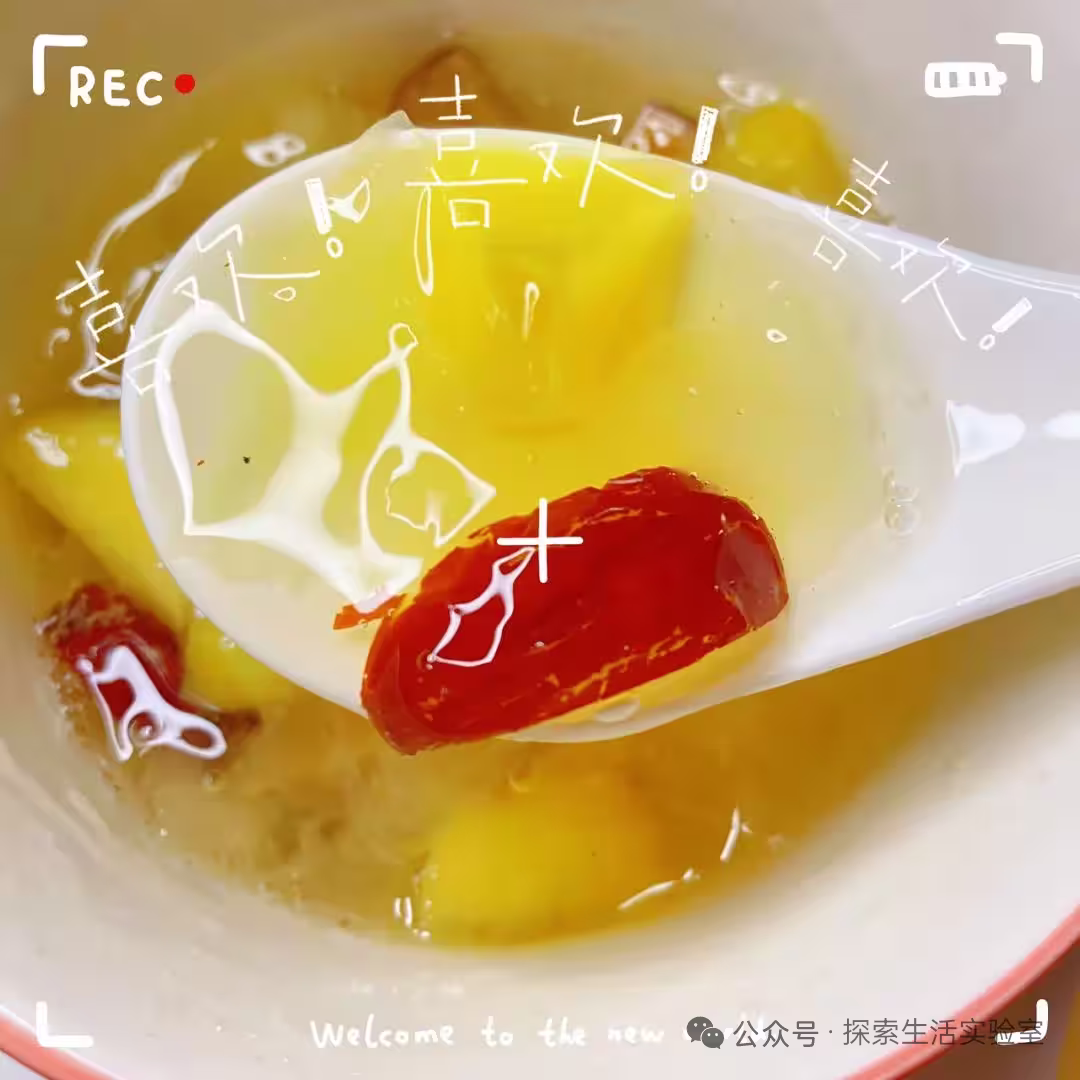 我家娃前段時間總喊嗓子干,早上起來還咳嗽兩聲。我連續給煮了五天這個羹,現在早上起來嗓子也不幹了。這羹口感稠稠的,銀耳滑溜溜的像果凍,蘋果煮得甜甜的,帶點嚼勁。銀耳能潤嗓子,蘋果開胃口,平時愛上火的娃可以喝這個!