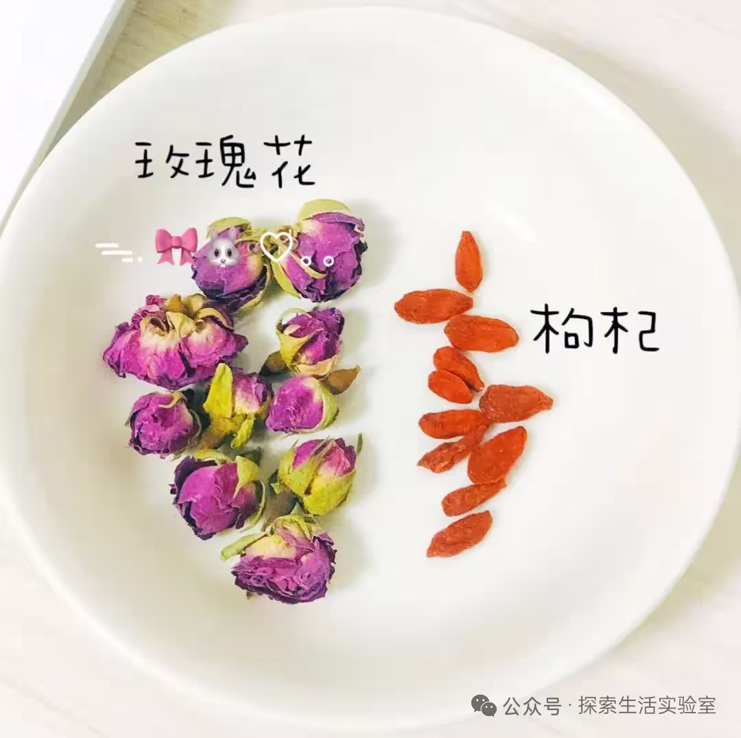 1️⃣玫瑰用流動水沖5秒(輕輕沖,別把花瓣衝掉),枸杞淘洗一遍;