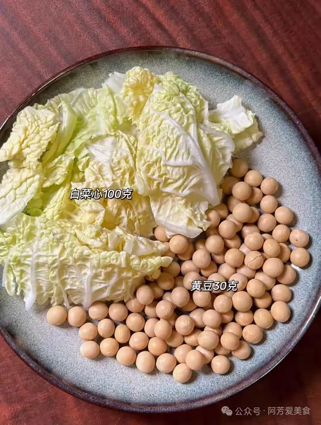 1.黃豆洗凈後加水浸泡1小時,撈出放入鍋中;