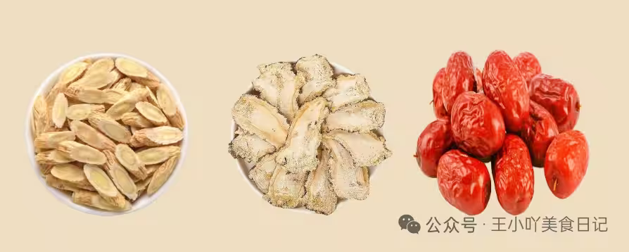 做法:將黃芪、當歸和紅棗洗凈放人鍋中加入約600毫升水,煮開後小火煮20分鐘左右即可。