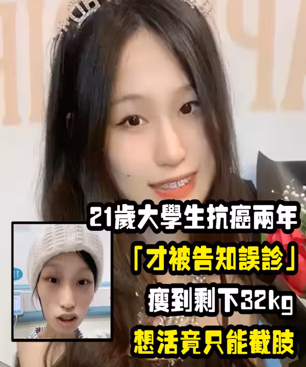 21歲大學生抗癌兩年「才被告知誤診」!瘦到剩32kg「想活只能截肢」