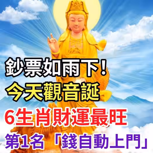 鈔票如雨下!今天觀音誕,6生肖財運最旺,第1名「錢自動上門!」
