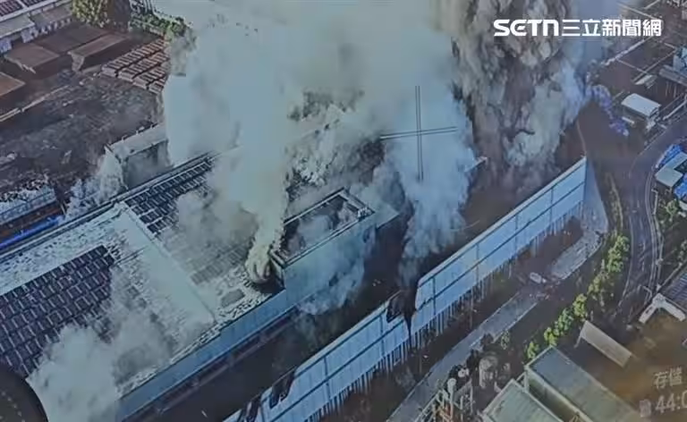 廠區全面悶燒。 現場空拍畫面曝光!廠區全面悶燒(圖/記者田居達攝影)