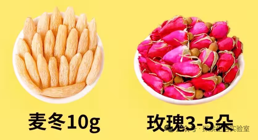 干玫瑰花5朵、麥冬10g、冰糖2顆、清水300ml
