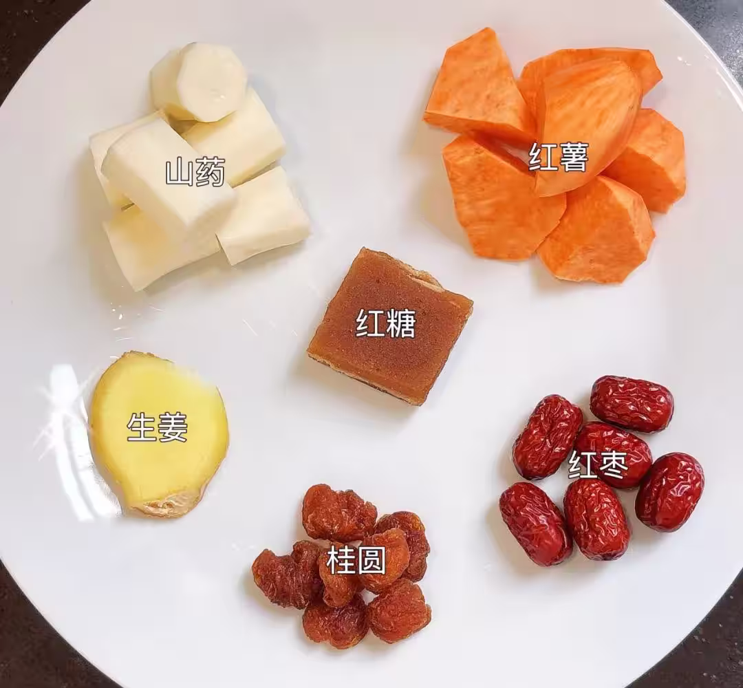 山藥 紅薯 紅棗 桂圓 紅糖 生薑