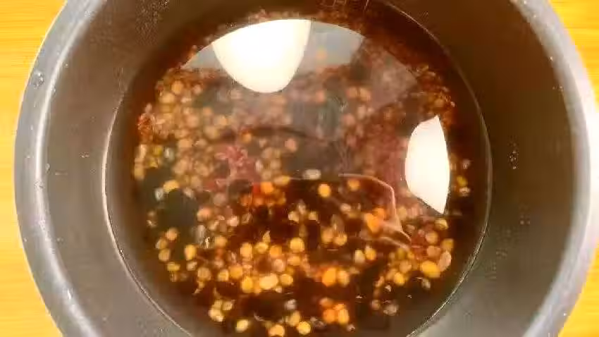 2、把浸泡後的豆子倒入電飯煲內或者是煮鍋內,裡面加入沒過豆子三分之二的冷水,如果是電飯煲摁煮飯鍵煮30分鐘。