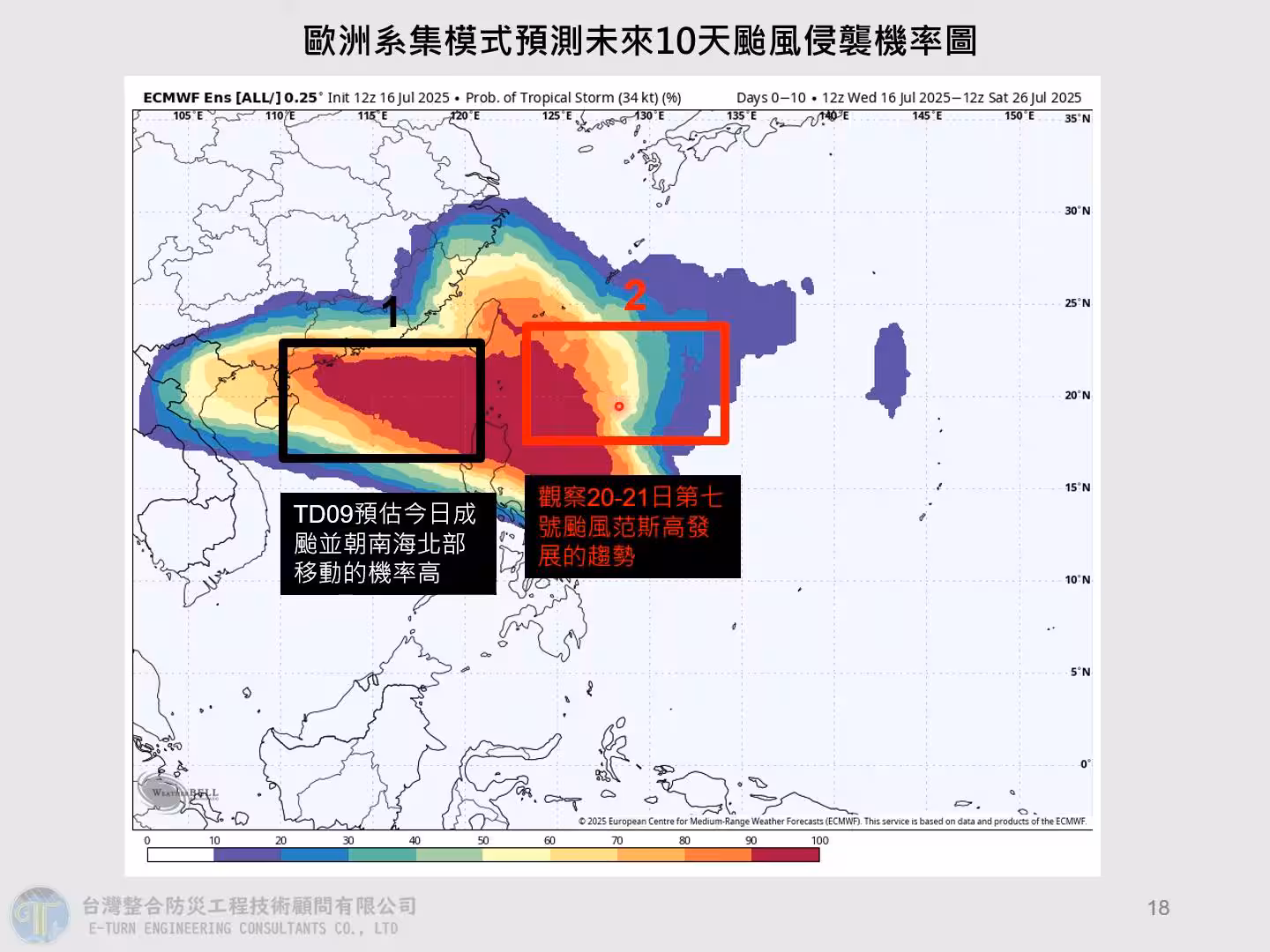 最新颱風路徑、颱風動態出爐!賈新興直言,根據歐洲模式,下周二(22)、下周三(23),台灣很可能受到低氣壓或颱風影響,因北邊太平洋高氣壓關係,颱風比較會「往台灣方向走」。