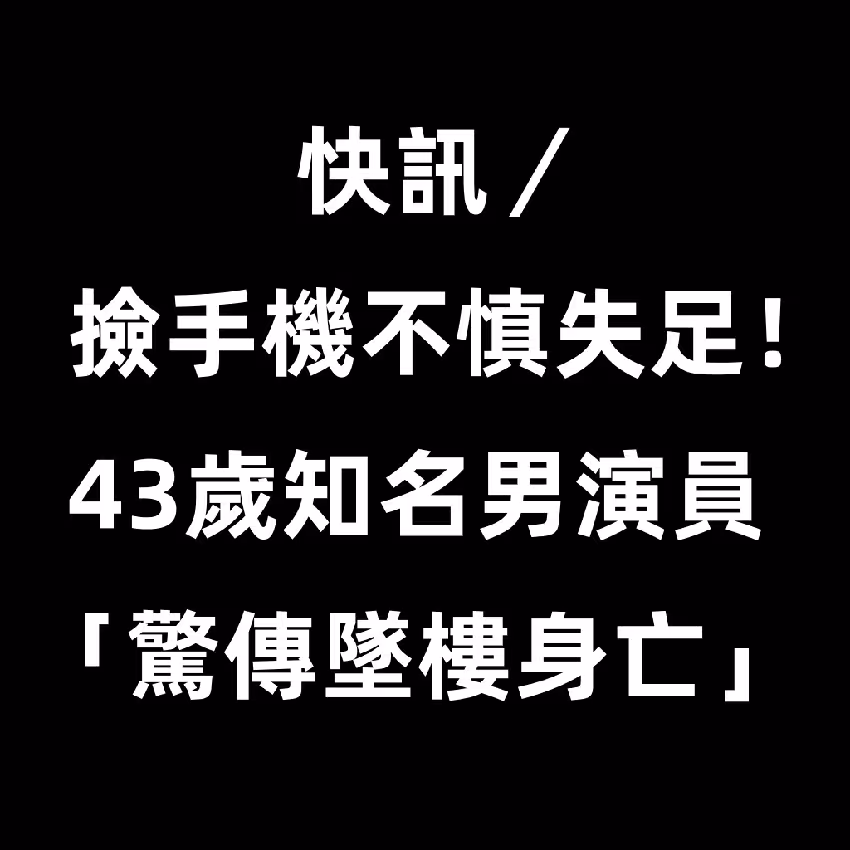 快訊/撿手機不慎失足!43歲知名男演員「驚傳墜樓身亡」