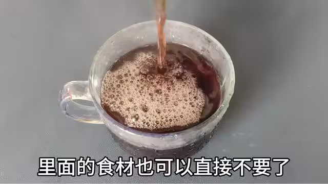 最後只需要將這一鍋水給它盛出,倒入平時喝水的杯子當中,裡面的食材也可以直接不要了,這是因為它們當中的成分已經全部煮至這樣的水中,不要小看這一杯水,雖然說製作方法和食材都非常的簡單,但是做卻一點都不簡單喲!