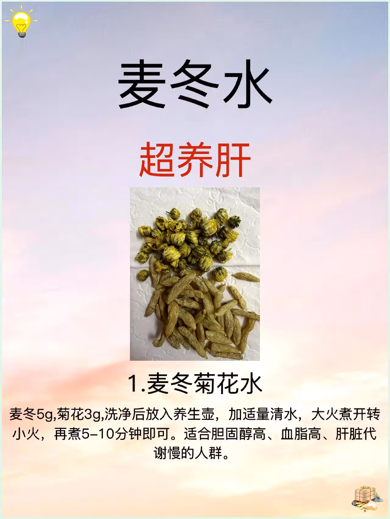 想要擁有健康肝臟,除了早睡早起、少熬夜,平時喝點麥冬水也是絕佳選擇。麥冬水搭配多樣,不同搭配功效有別,多達15種搭配組合,養肝效果超棒!