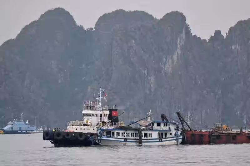 (河內訊)越南廣寧省下龍灣上周六(19日)觀光船翻覆事件至今造成至少35人死亡。一名趕到現場的男子透露,親戚一家四口原本是要帶著放暑假的2名孩子出去玩,沒想到卻遇上船難喪生,2名孩子與母親的遺體已經尋獲,目前正在等待孩子父親下落,男子含著淚說「我們知道,已經沒有希望了」。