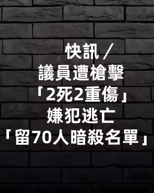 快訊/議員遭槍擊「2死2重傷」...嫌犯逃亡「留70人暗殺名單」!