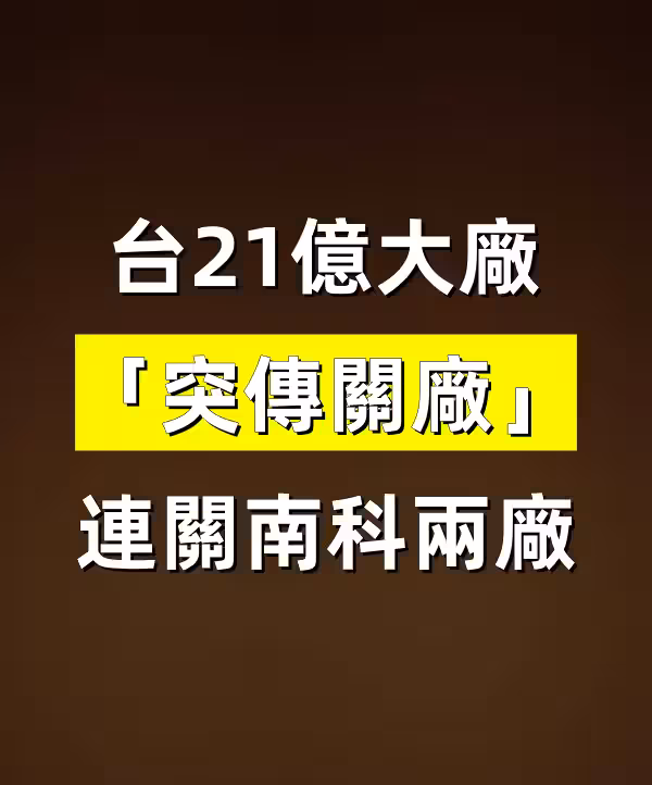 快訊/台21億大廠 「突傳關廠」 連關南科兩廠