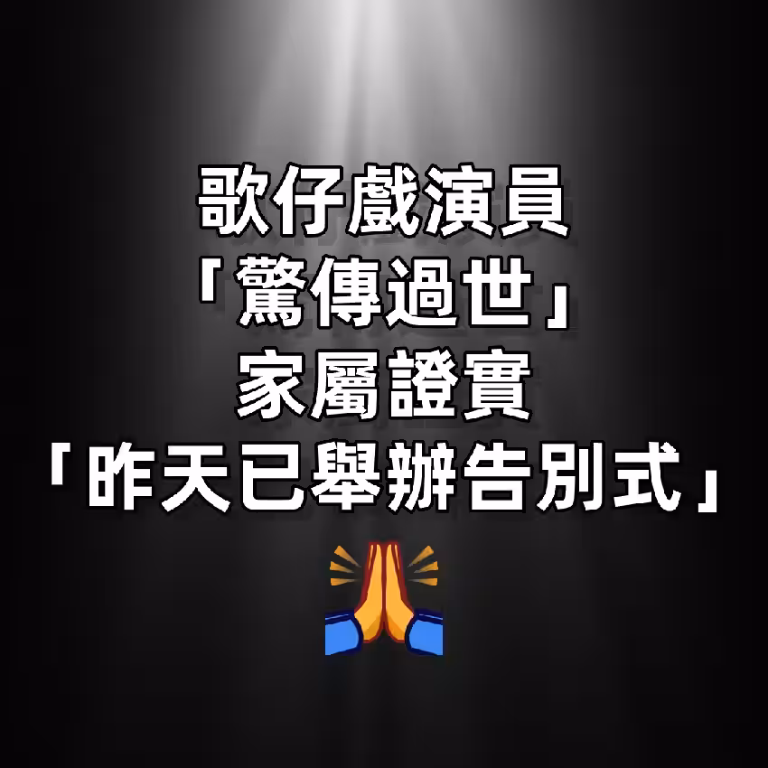 歌仔戲演員「驚傳過世」!家屬證實「昨天已舉辦告別式!」