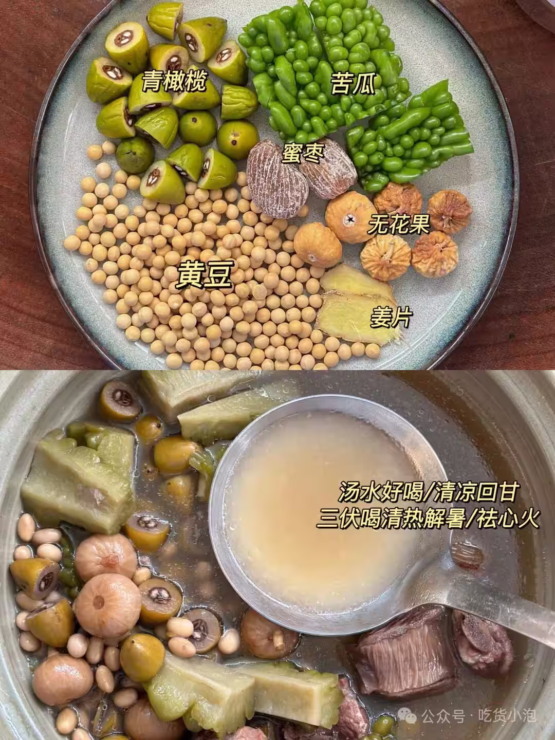 苦瓜1條、黃豆50克、甜橄欖20個、姜2片、無花果6個、蜜棗2個。苦瓜具有清心瀉火的功效,夏天人們容易心火旺盛,出現火毒攻心的情況,進而引發心煩、口渴、舌尖長瘡或小便發黃等症狀。因此,適量食用苦瓜,能讓夏天過得更舒適。