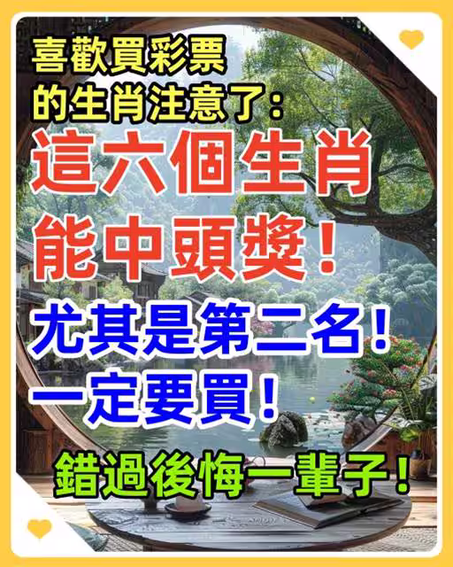 喜歡買彩票的生肖注意了:這六個生肖能中頭獎!尤其是第二名!一定要買!錯過後悔一輩子!