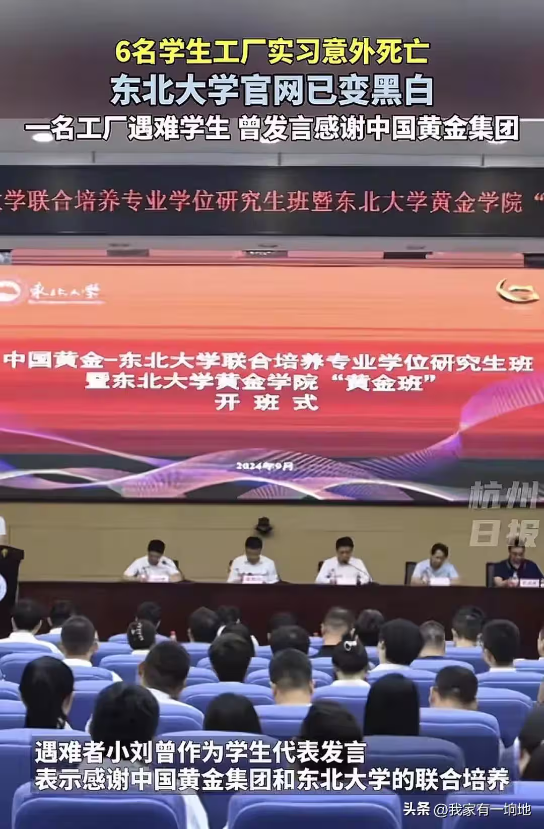 在此之前,遇難者之一的劉某還曾經作為學生代表發言」感謝中國黃金集團」,後面的大屏上清晰寫著中國黃金-東北大學聯合培養研究生班,簡稱就是「黃金班」,能夠進入這裡的都是班級的尖子生。